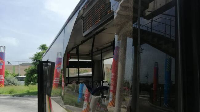 El sistema de Transporte Masivo Transmetro reportó que dos buses que cubrían sus rutas en Soledad, fueron atacados, provocando daños en los ventanales de los vehículos, en medio de operativos que la Policía Metropolitana realiza con mototaxistas en el municipio.