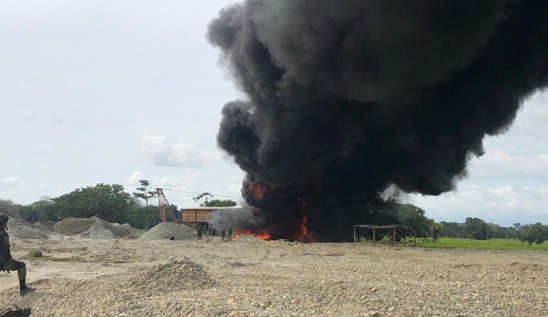 Tropas del Ejército Nacional, en las últimas horas destruyeron tres unidades ilegales de producción minera, con maquinaria que estaría avaluada en 2580 millones de pesos.