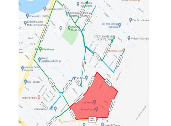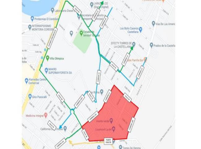 En estos dos sectores del norte de la capital de Córdoba el cerco rige en el tramo entre la Calle 48 con Carrera 14C y 14D hasta calle 54 con Carrera 12. También en el tramo entre la Calle 54 con Carrera 12 hasta calle 54 con Carrera 14A.