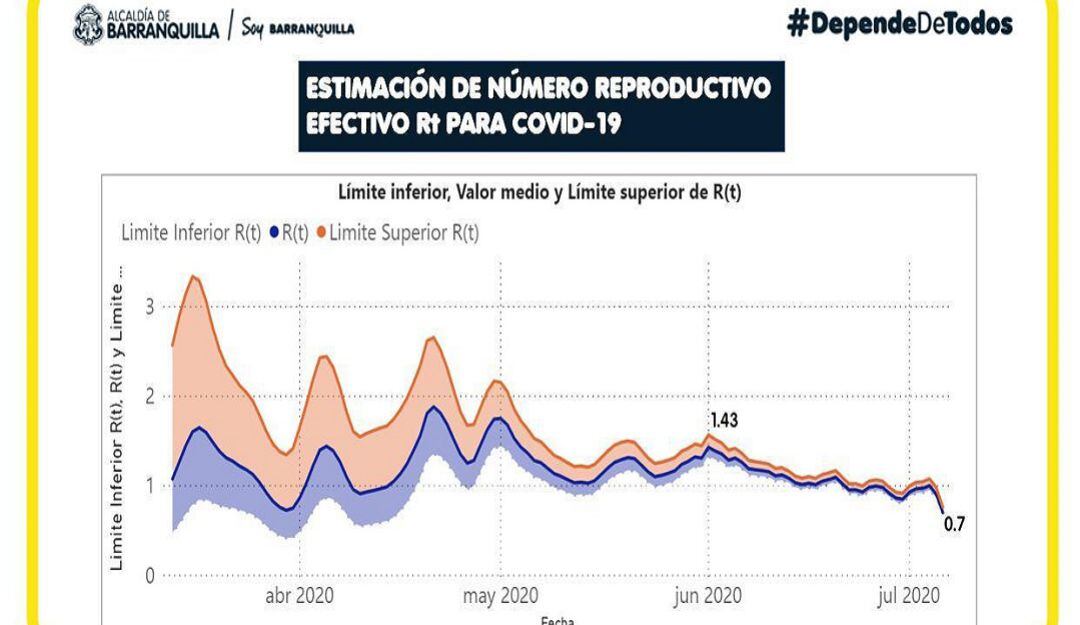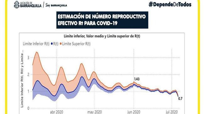 Agregó que “Esta es tasa de contagio a la fecha. En abril teníamos 4 contagiados por cada portador del virus y pasamos a 0,7 en julio. Entiendo que inquieten cifras de contagio acumuladas de 3 meses, reportadas hoy, pero las actualizadas muestran que Barranquilla empieza a ganar batalla al COVID”.