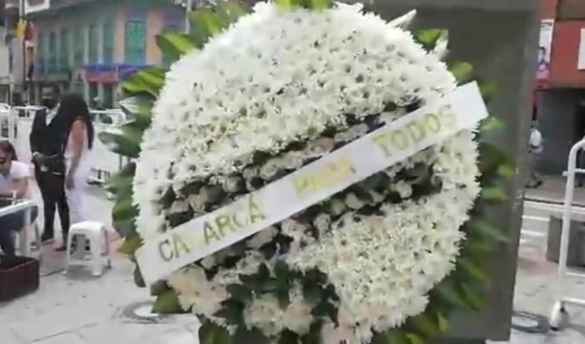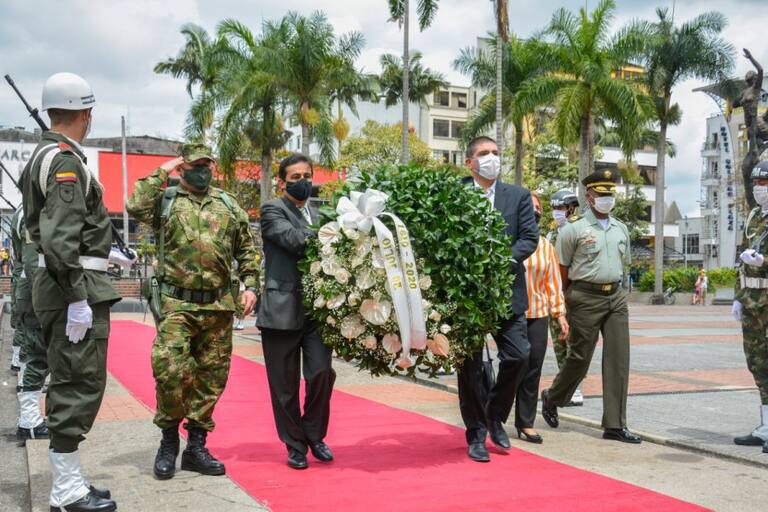 Ofrenda floral en la plaza de Bolívar en Armenia