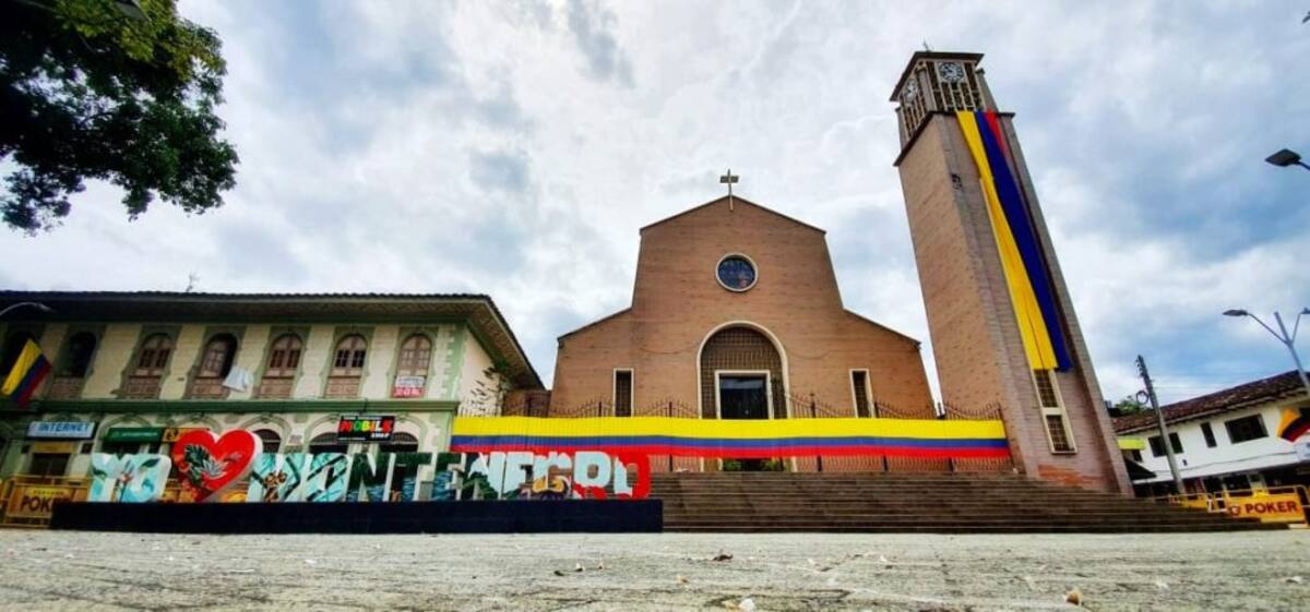 Parque principal y parroquía del municipio de Montenegro en el día de la independencia