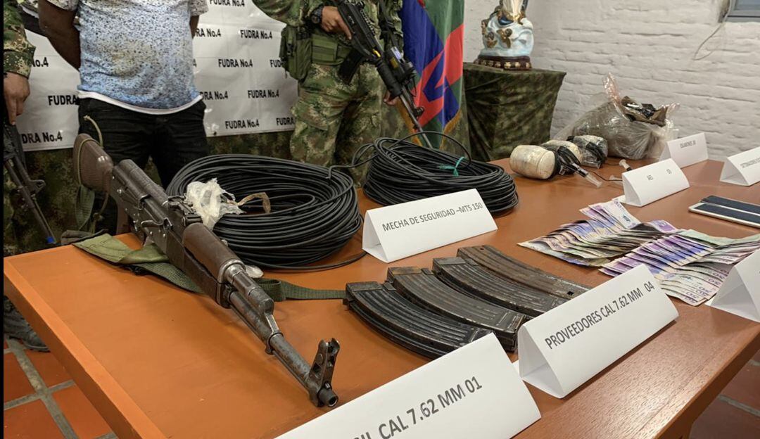 En el momento de su captura alias Dago tenía en su poder un fusil y cuatro proveedores para el mismo, al igual que explosivos, dos celulares y dinero en efectivo. El capturado se encontraba en compañía de un sujeto señalado de ser alias el Negro.