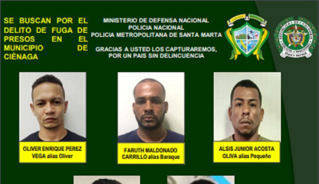 Unidades de la Policía Nacional realizan un vasto operativo para recapturar a siete reclusos que se fugaron de la Estación del municipio de Ciénaga, Magdalena, en la madrugada de este martes 21 de julio.