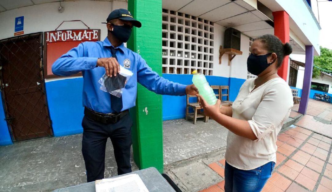 La Alcaldía de Cartagena, a través de su Departamento de Apoyo Logístico, realizó visitas de inspección a las instituciones educativas adscritas al distrito, para verificar que los vigilantes cumplan con todos los protocolos de bioseguridad necesarios para evitar el contagio del COVID-19.