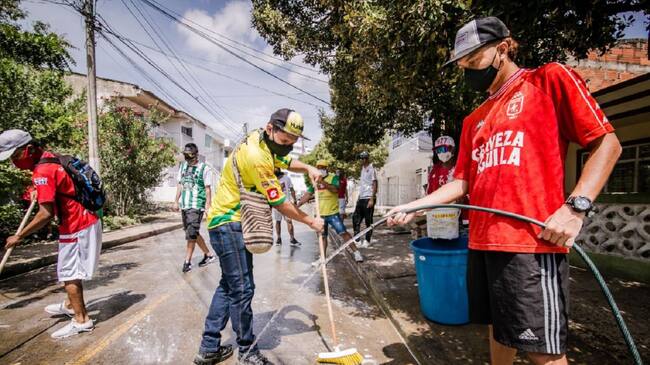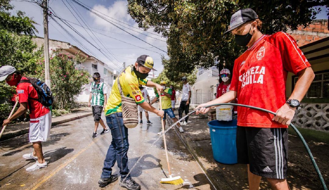 Los integrantes del Colectivo de Barristas se dieron cita en el barrio El Rubí, desde donde con desinfectantes y escoba en mano limpiaron las calles y andenes, dando con esto un claro ejemplo de cooperación y de unión.