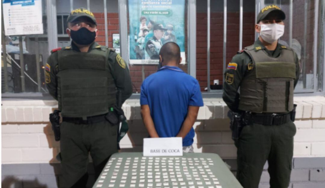 Unidades adscritas a la Subestación de Policía del Kilómetro 41 en Manizales incautaron 200 dosis de base de coca y capturaron a una persona que portaba la sustancia.