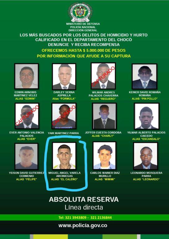 Este hombre figuraba en el cartel de los más buscados del departamento del Chocó, por quien las autoridades estaban ofreciendo una importante suma de dinero.