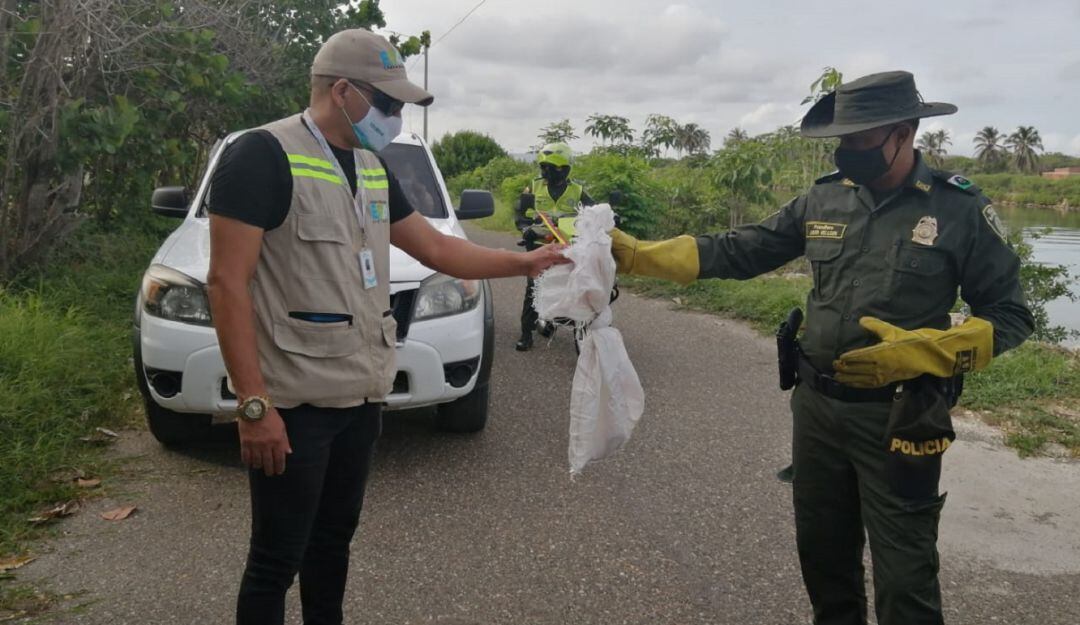 Al lugar acudieron policías del Grupo de Protección Ambiental y Ecológica, quienes con herramientas intervinieron y rescataron al reptil, reubicado en su habitad, en coordinación con la autoridad ambiental - CARDIQUE.