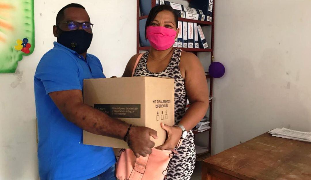 En Arjona, el coordinador de la Mesa de Víctimas, Gustavo Cossio, agradeció la entrega "esto es un sustento y una voz de aliento para las víctimas en esta pandemia, agradecemos la entrega realizada por la Unidad".