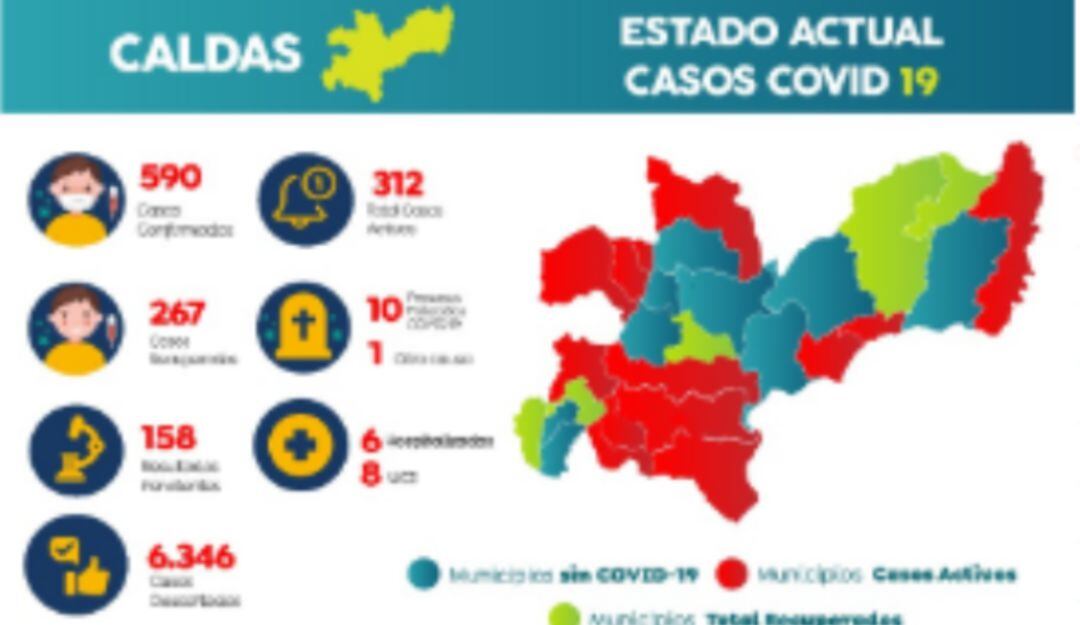Además de los nuevos contagios, hoy se reportaron 3 muertes a causa de la enfermedad en el territorio caldense. Con las nuevas cifras, el departamento llega a 590 personas infectadas de coronaviruas, de estas 267 se han recuperado y 10 han fallecido.