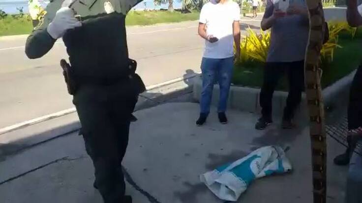 En las playas de Castillogrande, sector turístico de Cartagena, gracias al oportuno aviso de los ciudadanos que practicaban ejercicio en esta zona del norte de la ciudad, alertó a policías de la Metropolitana sobre la presencia de una enorme serpiente, en cercanías a uno de los espolones a pocos metros del mar.
