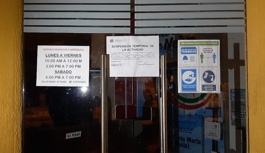 Fue así como este miércoles en la noche, en el barrio Villa Regina, ubicado en la Comuna cinco de Neiva, se cumplió una visita a la parroquia Santa Marta de este sector, donde se evidenció que existía una aglomeración de personas en el templo, incumpliendo las disposiciones establecidas por las autoridades para el desarrollo de esta actividad, por lo que se dispuso a realizar un cierre temporal y suspensión del permiso.
