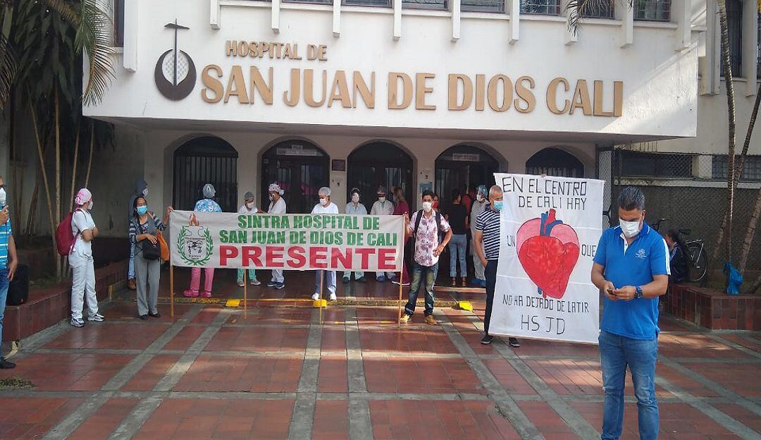 En las pancartas de los manifestantes se puede leer la frase "en el centro de Cali hay un corazón que no deja de latir, pero necesita oxígeno", refiriéndose a las deudas por más de 18 mil millones de pesos que tiene el hospital.
