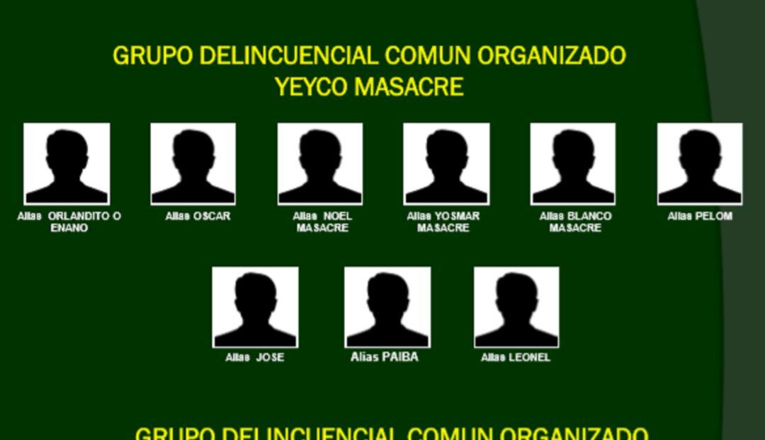 De la banda ‘Yeico Masacre’ están: alias ‘Orlandito o Enano’, ‘Oscar’, ‘Noel Masacre’, ‘Yosmar Masacre’, ‘Blanco Masacre’, ‘Pelóm’, ‘José’, ‘Paiba’ y ‘Leonel’.