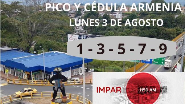 Contexto: Armenia: Pico y cédula hoy domingo 2 de agosto, rotación hasta 31 de agosto