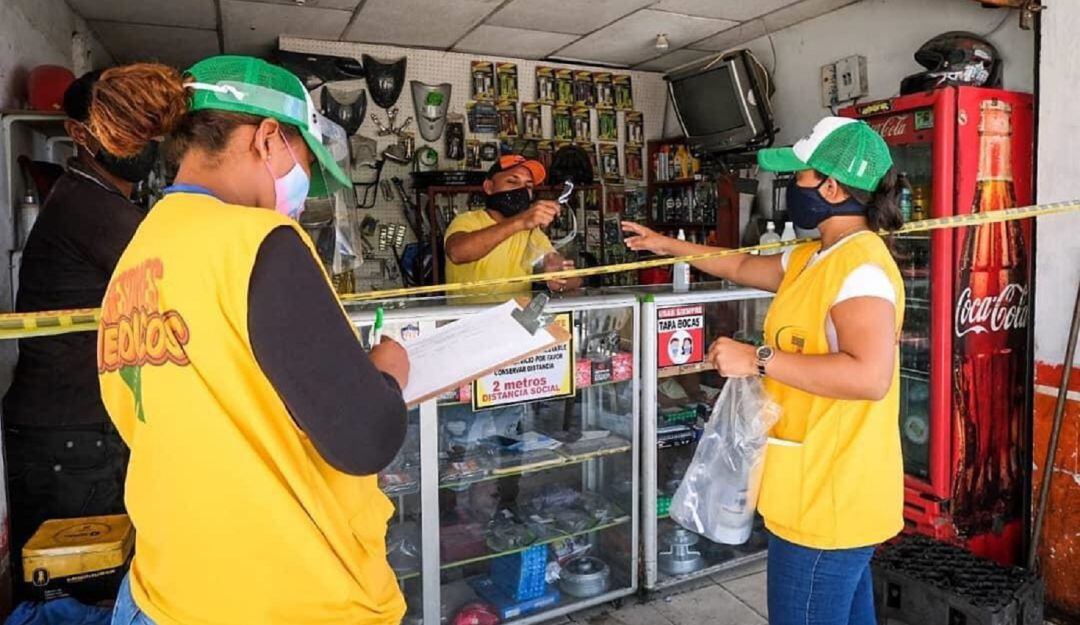Durante el recorrido de Comercio Bioseguro por el barrio Manga, los líderes también hicieron pedagogía en compañía de la Primera Dama del Distrito, Cynthia Amador, la directora de la Escuela de Gobierno y Liderazgo, Cielo Blanco, y funcionarios del Colegio Mayor de Bolívar.