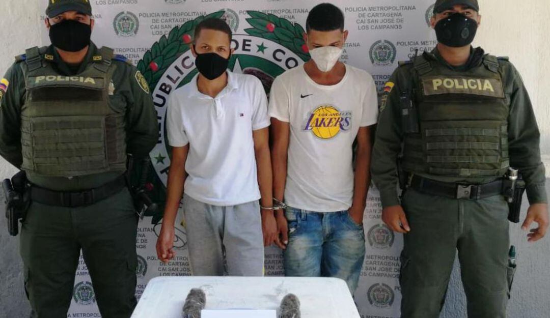 Durante los controles ejecutados en el sector Revivir del barrio San José de los Campanos, los cuadrantes 6-19 y 6-20, capturaron en flagrancia a dos hombres de 20 y 30 años, identificados como Mauricio Andrés De Ávila Shotborgh y Daniel Arturo Llerena Contreras, quienes transitaban por una de las vías principales, portando 200 dosis de marihuana, siendo reducidos y puestos a disposición de la Fiscalía General de la Nación, por los delitos de tráfico, fabricación o porte de estupefacientes y violación de Medidas Sanitarias.