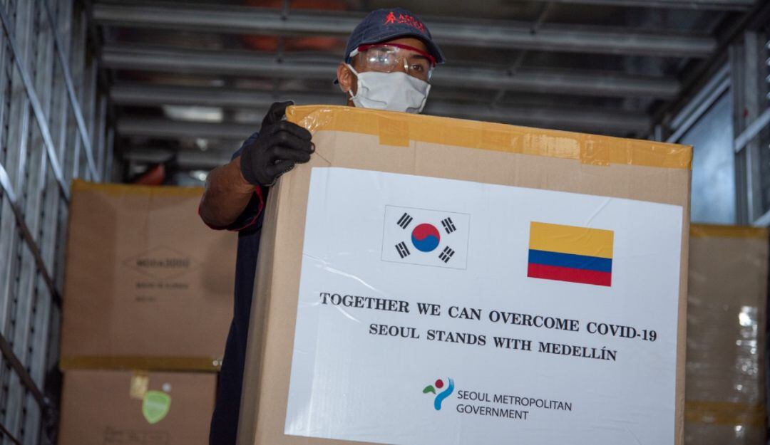 La Alcaldía de Medellín, a través de la estrategia de cooperación internacional y alianza entre ciudades que han liderado la red C40, recibió la donación de tres mil trajes quirúrgicos por parte del gobierno de Seúl, Corea del Sur, que serán distribuidos entre el personal de salud en primera línea de atención al COVID-19.