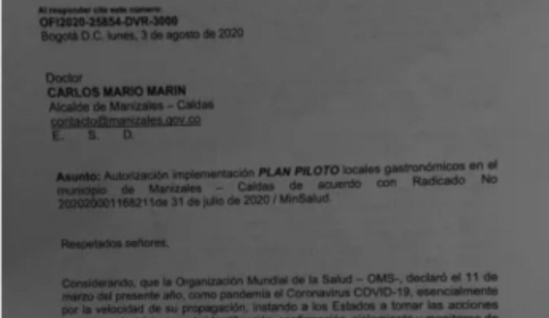 Después de recibir la negativa por parte del Ministerio del Interior para la reapertura de los restaurantes de Manizales en días anteriores, hoy la Gobernación de Caldas dio a conocer que el mismo Ministerio notificó la autorización de esta actividad.