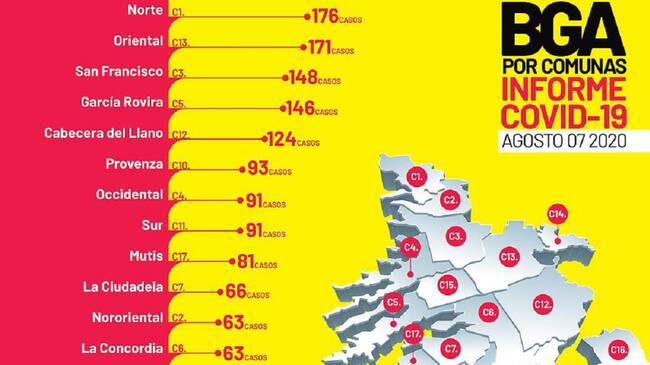 La alcaldía de Bucaramanga, dio a conocer el mapa de los barrios y comunas donde mas casos positivos de la COVID -19 se han presentado en esta capital.