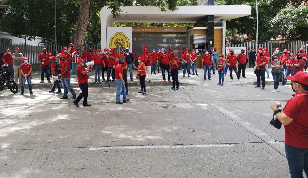 En la mañana de este martes 11 de agosto se presentó una protesta a las afueras de la Universidad Autónoma del Caribe por parte de trabajadores que rechazaron la suspensión de contratos laborales.