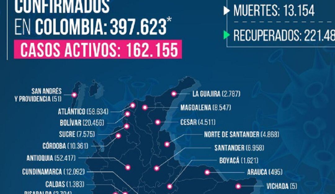 En Colombia se conocen 10.142 casos nuevos de la COVID -19. Hoy se procesaron: 33.619 pruebas
