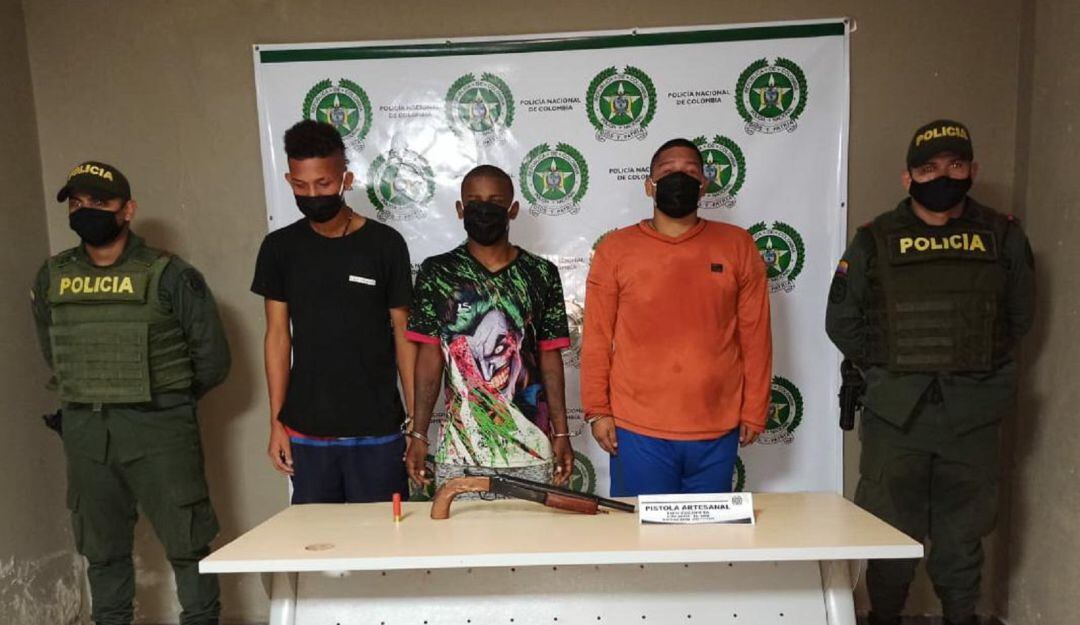 El Departamento de Policía Bolívar capturó a tres sujetos que integrarían una pandilla que opera en el municipio de Arjona. Patrullas adscritas al Modelo Nacional de Vigilancia Comunitaria por Cuadrantes, fueron alertadas sobre una riña que se presentaba en el barrio Las Margaritas, y tras llegar al lugar se encontraron con joven de 18 años que presentaba varias heridas de arma de fuego, de fabricación artesanal.