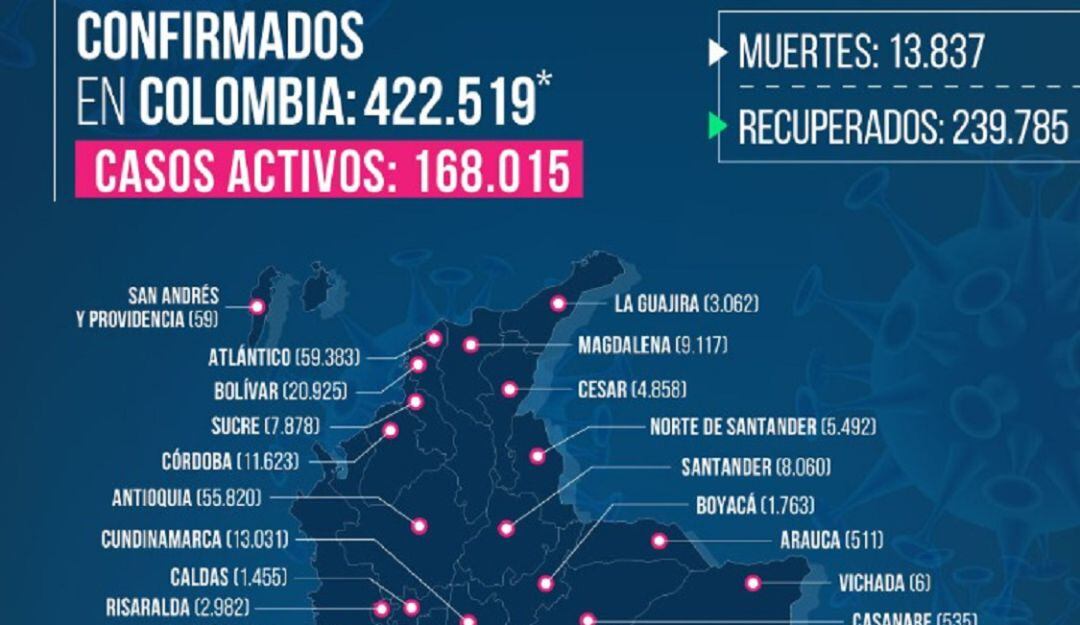 Casos activos en el territorio Nacional: 168.015 .