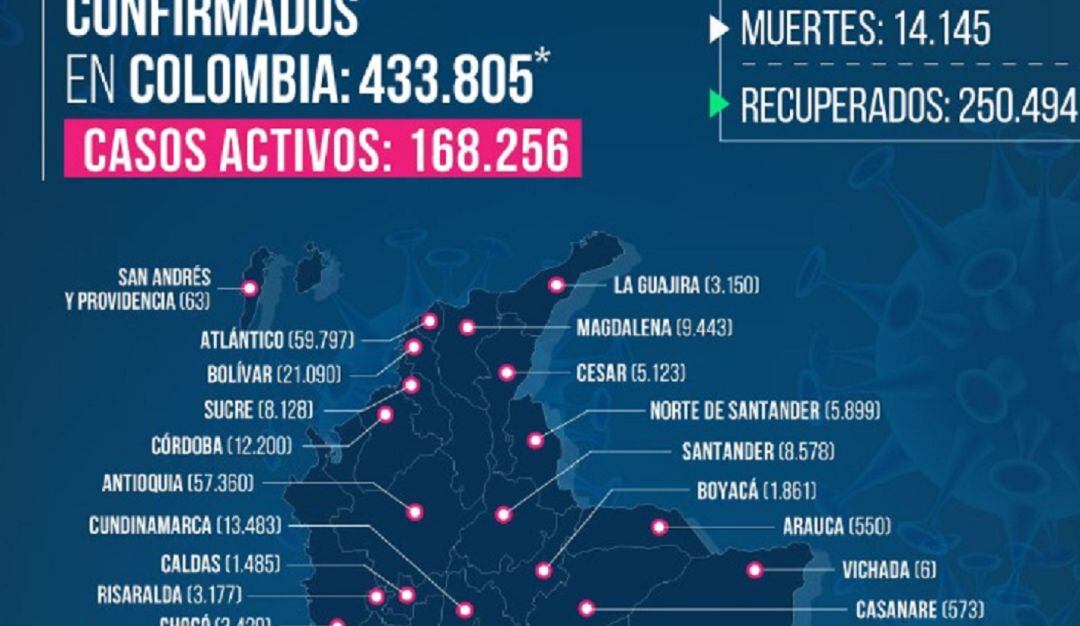 Hoy 13 de agosto fallecieron en Colombia, 308 personas por causa del coronavirus.