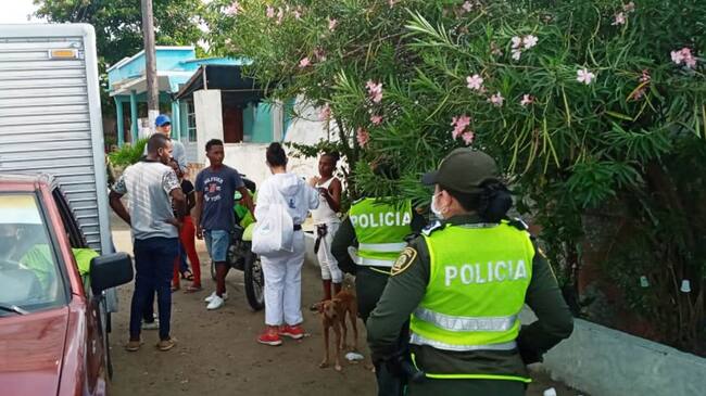 Policía Metropolitana de Cartagena, acompañó esta entrega de ayudas y elementos de bioseguridad en el sector Mar Linda