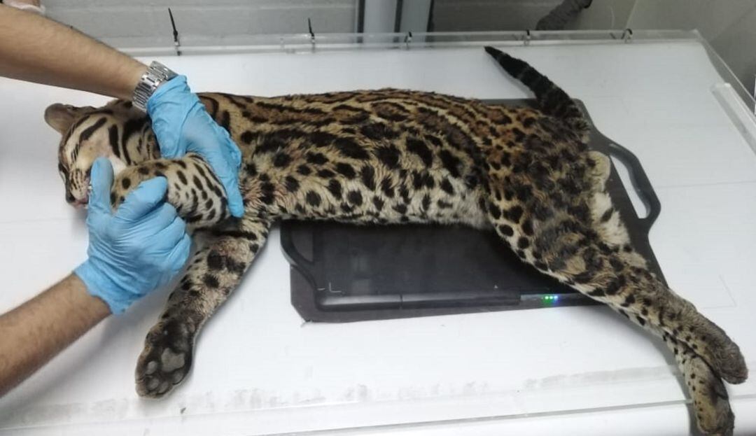En la vía que conecta al municipio de Santa Fé de Antioquia con el corregimiento Bolombolo de Venecia, encontraron a un ocelo con heridas de gravedad debido a un atropellamiento.