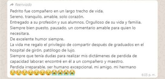 Estas palabras fueron las palabras otro de sus grandes amigos, el doctor Luis Eduardi Saavedra.