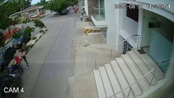 El hecho delictivo quedó registrado en una cámara de seguridad, donde se pudo evidenciar cómo un sujeto armado camina tranquilamente por la calle hacia una pareja que acababa de llegar al lugar a bordo de una motocicleta.