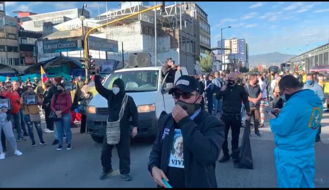Un grupo de alrededor de 1000 comerciantes protesta desde las seis de la mañana de este lunes en el centro de Bogotá, piden que los dejen trabajar y que no haya más cuarentenas en la ciudad.