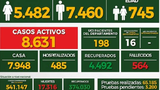 Desde que comenzó la pandemia en Santander han resultado contagiadas por coronavirus 13.687 personas y de ellas 8.631 están activas, 4.492 recuperadas y 564 fallecidas. Estos son los municipios donde los pacientes han logrado superar el virus en el departamento: