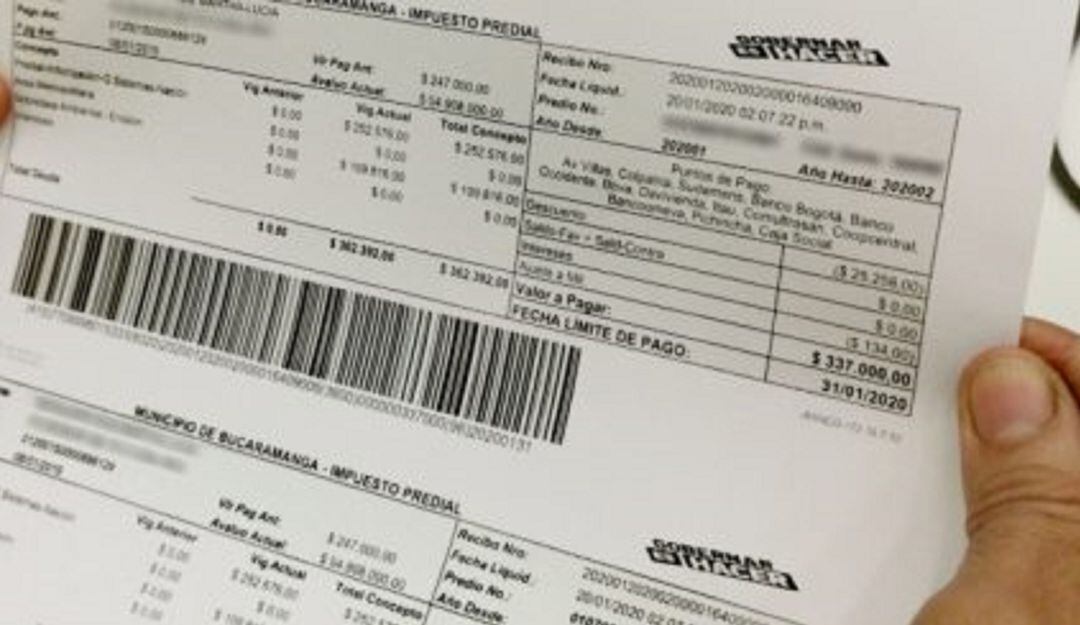 Hasta el próximo lunes 31 de agosto es el plazo que tienen los contribuyentes en Bucaramanga para el pago del impuesto predial de la vigencia 2020 sin descuento y sin intereses.