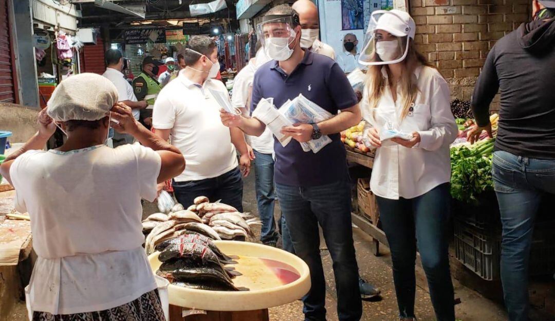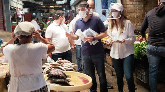 La senadora Nadia Blel en compañía del representante bolivarense Yamil Arana entregaron más de 3000 de tapabocas a los comerciantes del mercado de Bazurto, buscando así proteger la salud de los cartageneros a través del uso de este elemento de bioseguridad.