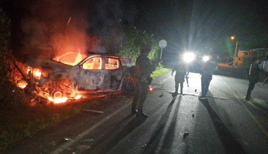 La patrulla que quedó en llamas, fue atacada altura del kilómetro 55, en el sector conocido como La Espriella, cerca de la base Gualtal del Ejército.