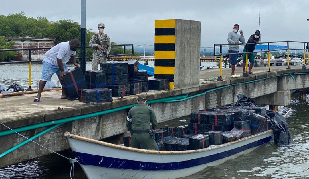 En la embarcación había dos personas, que pretendían llevar el cargamento hasta Necoclí desde Panamá.