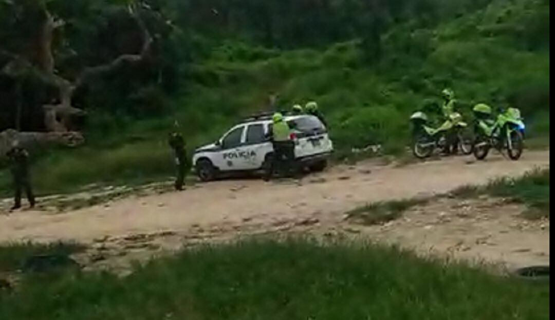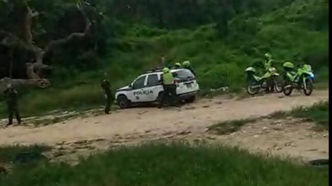 En las imágenes se observa a un grupo de funcionarios de la MECAR en una zona enmontada, donde habrían ocurrido los hechos. Mientras, en el fondo se escuchan varios disparos, al parecer, para que los curiosos no utilizaran sus teléfonos celulares.