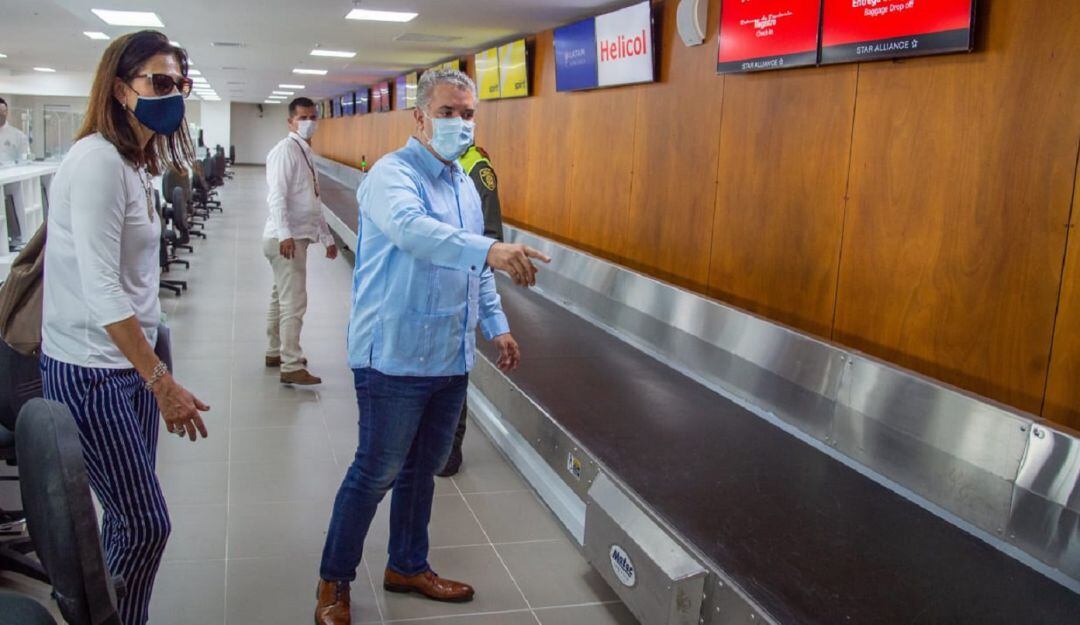 El mandatario de los colombianos, también recorrió las obras de la terminal aérea, que avanzan en un 93% y que se espera, sean parte del primer piloto en el país, para vuelos internacionales.