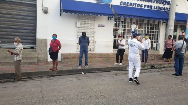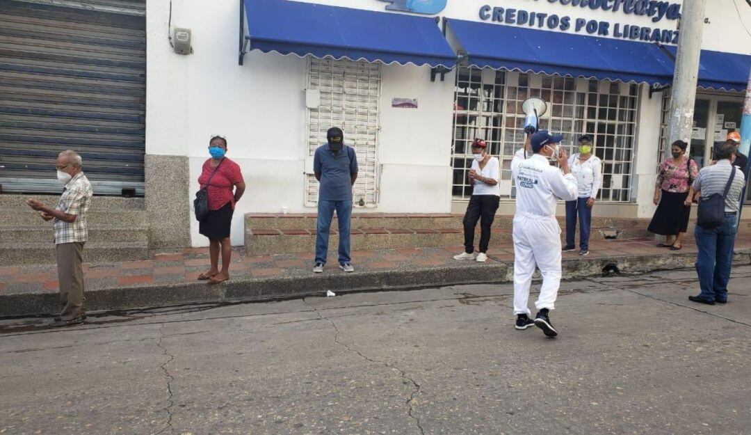De manera especial deberán exigir el uso de tapabocas, hacer control riguroso del aforo permitido (50% de su capacidad total), garantizar el distanciamiento de sus clientes y usuarios dentro y fuera de los establecimientos y locales comerciales, y demarcar los espacios de distanciamiento con líneas en el piso a una distancia mínima de un (01) metro, tanto en las zonas de acceso como en la parte interna y externa.