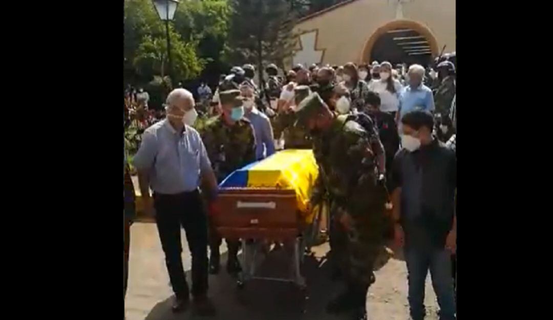 La banda de guerra del ejército lo acompañó con sus instrumentos hasta el último lugar donde descansará para siempre, el féretro impulsado por familiares y miembros del ejército estaba cubierto por la bandera nacional con la cual los familiares amigos y los miembros de la reserva activa de Colombia piden justicia ante este asesinato.