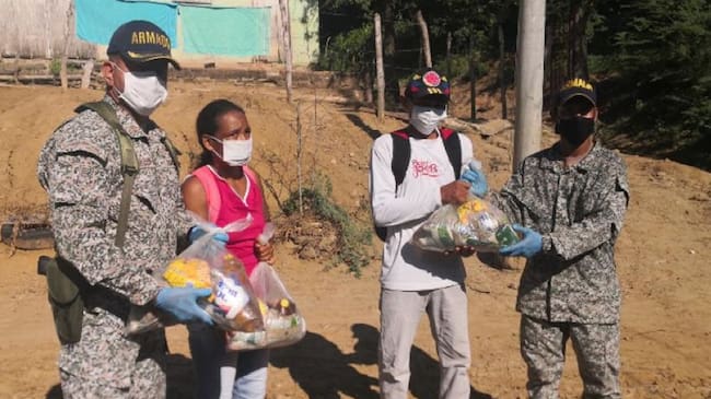 Conscientes de las dificultades que atraviesan las familias a causa de la pandemia generada por el virus COVID-19, Infantes de Marina en cabeza del Comandante del Batallón de Infantería de Marina No. 13, Teniente Coronel Helmuth Becerra, han entregado en su totalidad 100 donaciones y mercados a las familias del municipio y las comunidades rurales de las demás poblaciones de la subregión de los Montes de María.