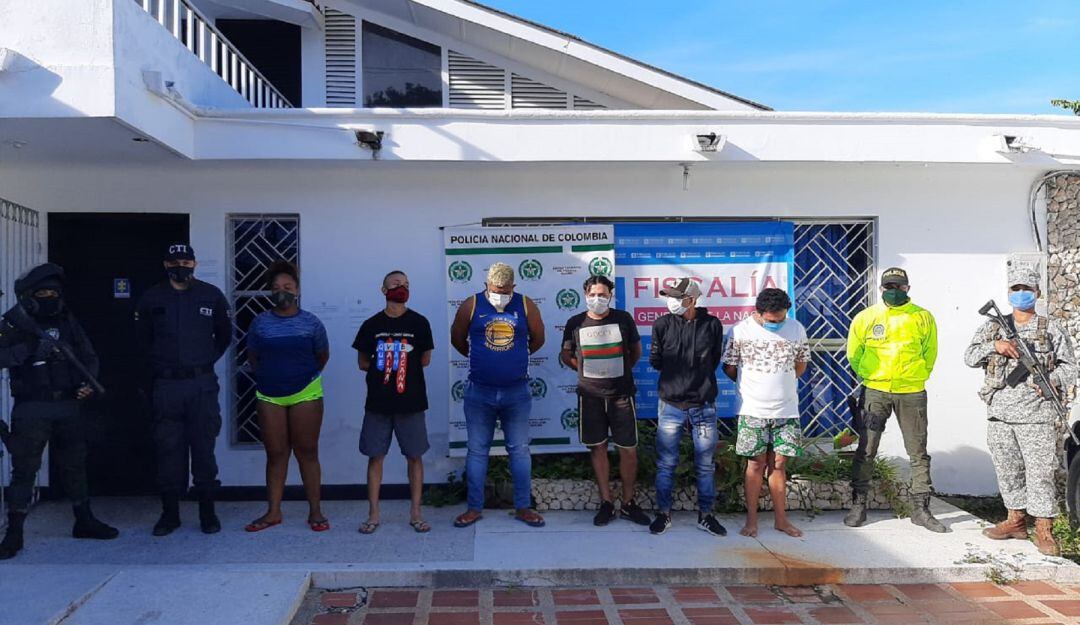 Los capturados fueron identificados por las autoridades como Cristian Caro Giraldo, alias Camila Cross, natural de la Tebaida, Quindío; Deivison Urango Yepez, alias Leonel, natural de Sincelejo; Yarmelis Meza Martínez, alias la Pili, natural de Tolú; Ángel Escobar Vidal, alias El Angelito; Brian Álvarez Jimenez, alias Brian y Jorge Amaya Tuiran, alias El Peluquero.