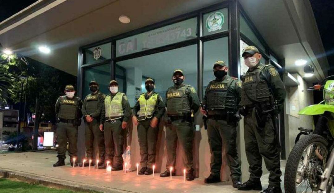 En varios CAI de la ciudad, uniformados y la comunidad pusieron velas en solidaridad con los familiares de las víctimas.