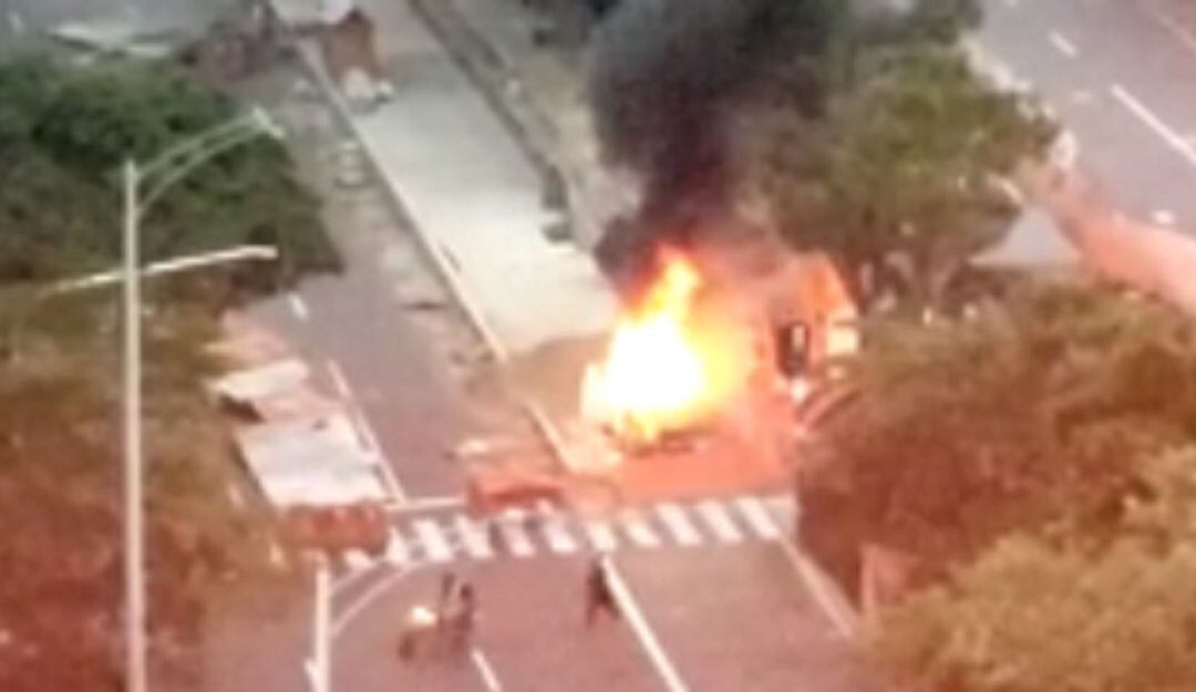 • Queman un bus de servicio público en medio de protestas en Caldas