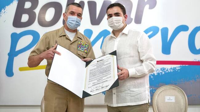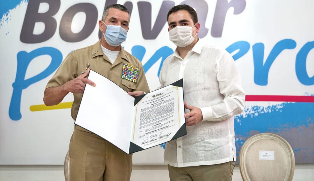 El Gobierno del "Bolívar Primero", en cabeza del Gobernador Vicente Blel Scaff, realizó un reconocimiento al vicealmirante Andrés Vásquez Villegas, nuevo segundo Comandante de la Armada Nacional, por su compromiso y trabajo por preservar la seguridad y el orden público en el departamento.