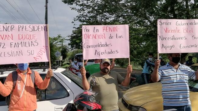Algunas de las familias afectadas decidieron llamar la atención del Fondo de Adaptación cerrando de manera temporal la vía de acceso al Puente Roncador por el municipio de Mompox.
